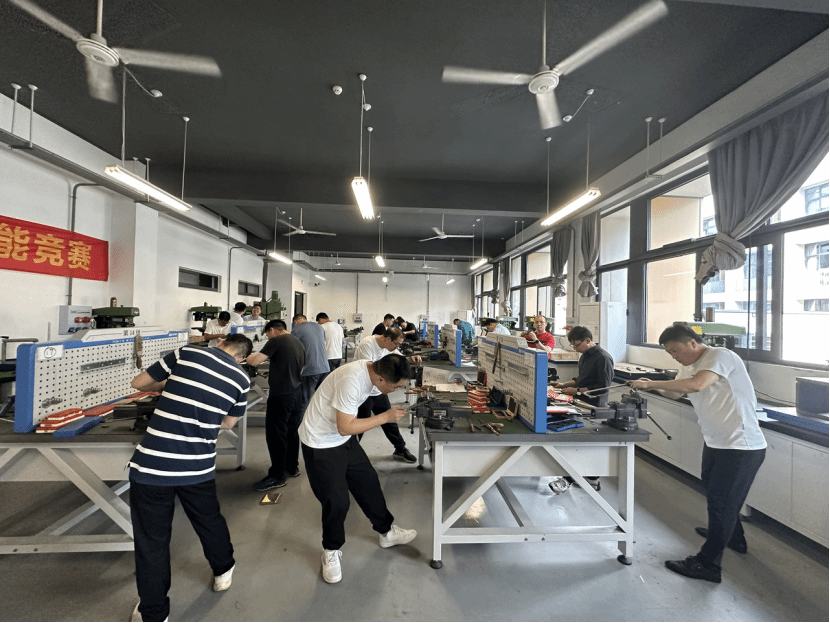 近年来,在政府部门的鼓励支持下,台州一些企业和技师院校深化校企合作,让企业技术工人进学校“回炉深造”学技能,助力企业员工实现高质量稳定就业。 这段时间每到周末,台州技师学院都会有工具钳工、电工技师和电工高级技师、车工(铣工)高级技师、劳资管理等5个班同时开课,授课的是学院的老师,学生是来自台州多家企业的技术工人,总计520余人。 工具钳工高级技师培训班共有11家企业的19名技工。这节实训课内容是考察钳工实操的“...