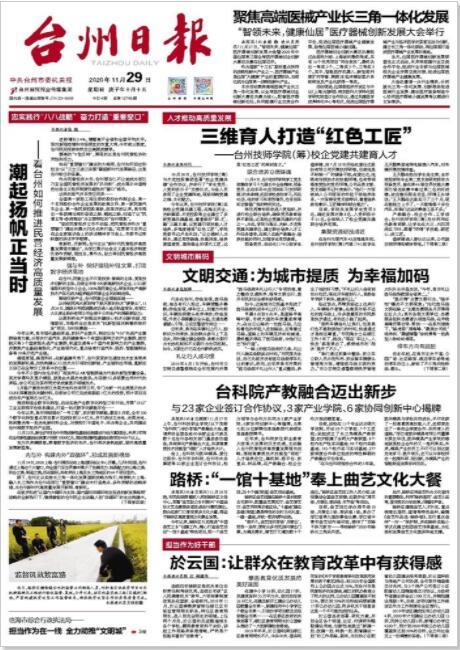 2018.07.06台州日报丨台州技师学院(筹)倾力打造教学做一体、 校企协同育人的人才培养体系