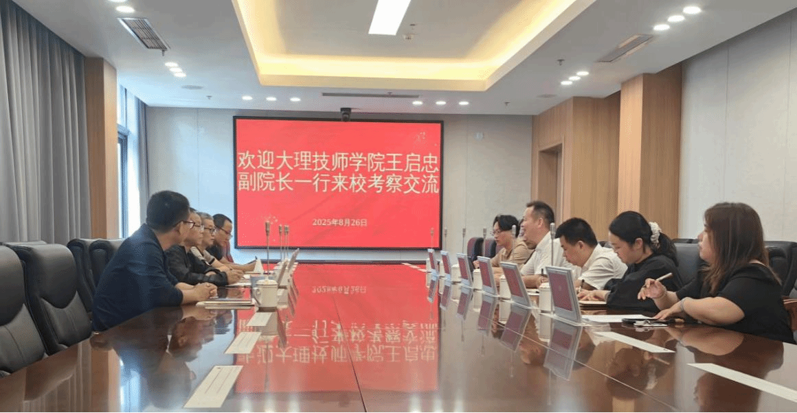 8月26日,大理技师学院副院长王启忠一行来校交流。两校通过现场调研、座谈交流、技能培训三个层面的互动,开启了东西部技工教育协作的新篇章。一、参观校园:实地感受办学特色在副校长柯中炉的陪同下,大理技师学院一行参观了校园环境和教学实训设施。代表团重点考察了世界技能大赛实训基地、木工实训室、建造实训中心等教学场所。“台州技师学院的实训设施建设令人印象深刻,特别是与世界技能大赛标准接轨的实训环境,为我们备战世赛提供了宝贵参考。...