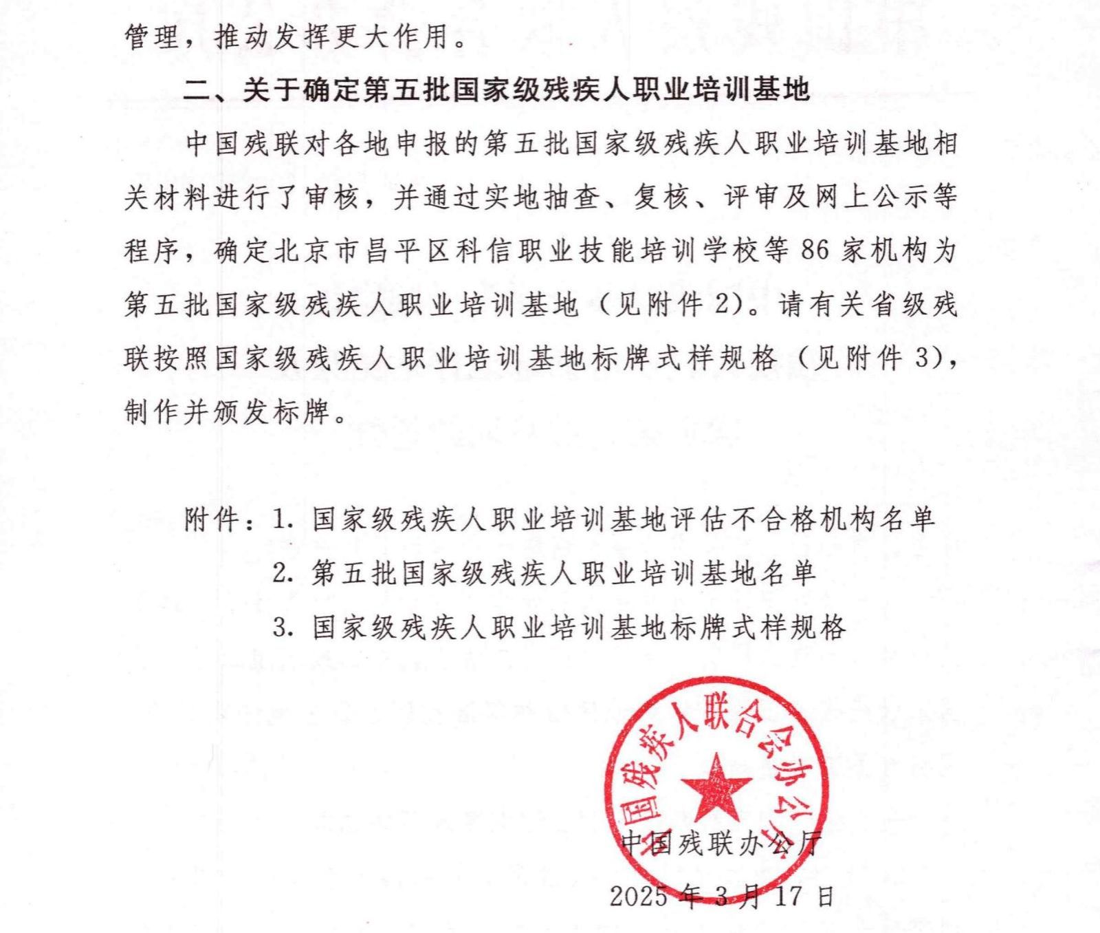 近日,中国残联办公厅印发《关于国家级残疾人职业培训基地评估结果及确定第五批基地的通知》,台州技师学院成功入选第五批国家级基地,为该批次浙江唯三、台州唯一。