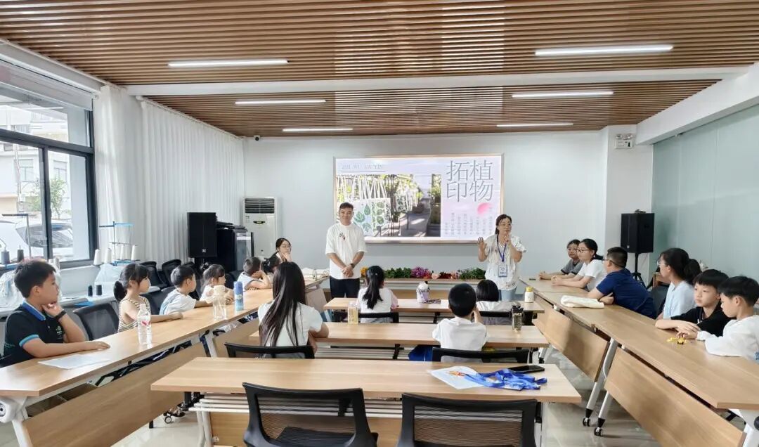 日,由九三学社台州市委员会主办的“智汇盛夏·知行无界——鳌峰文化非遗体验之:《植物的魅力》2025暑期特色夏令营在椒江举办。台州技师学院 “开拓队” 暑期实践团深度参与其中,队员们化身文化传承小助手,手把手协助孩子们将花叶的自然灵韵拓印于帆布之上,让草木之美永久定格。