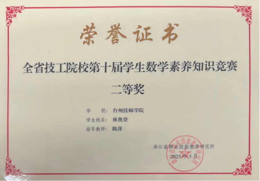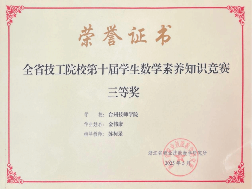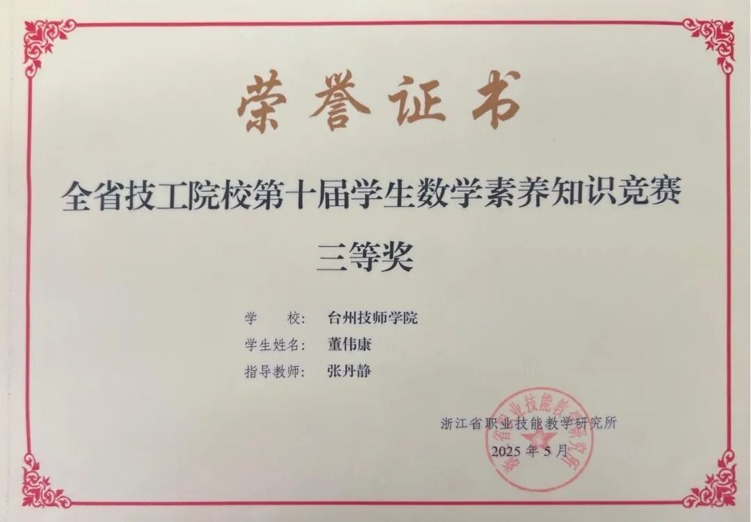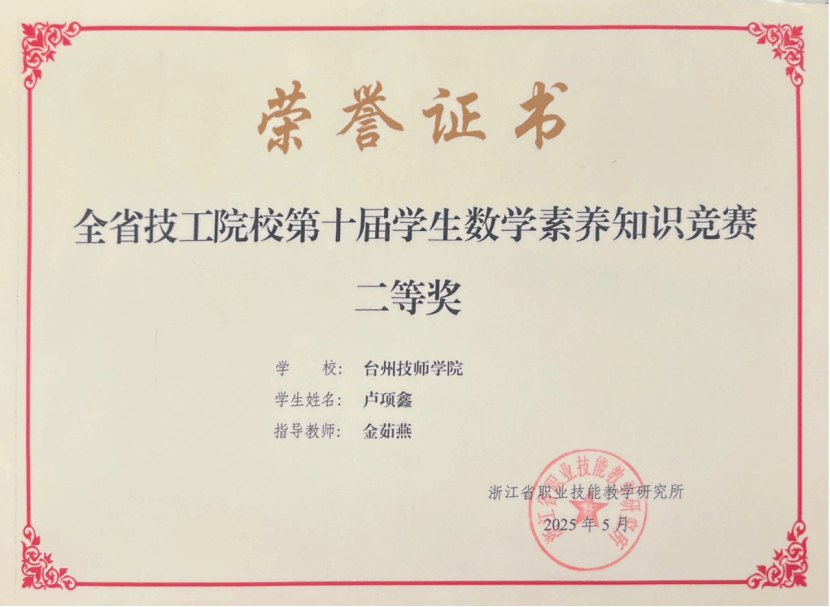 浙江省技工院校第十届学生数学素养知识竞赛