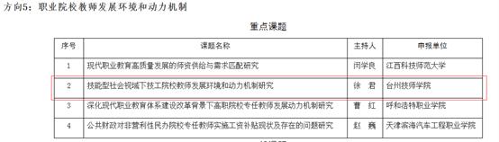 近日,中华职业教育社公布了2023年度规划委托课题立项名单,我院徐君老师主持的《技能型社会视域下技工院校教师发展环境和动力机制研究》获重点课题立项,是此次立项中唯一来自技工院校的项目,也是我院首次获得本项目立项的课题。