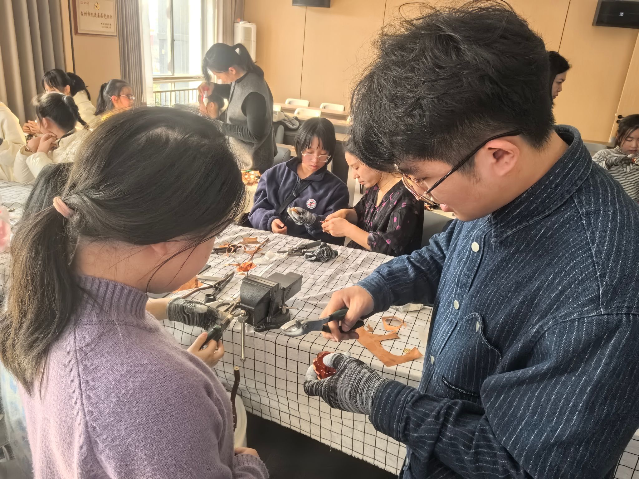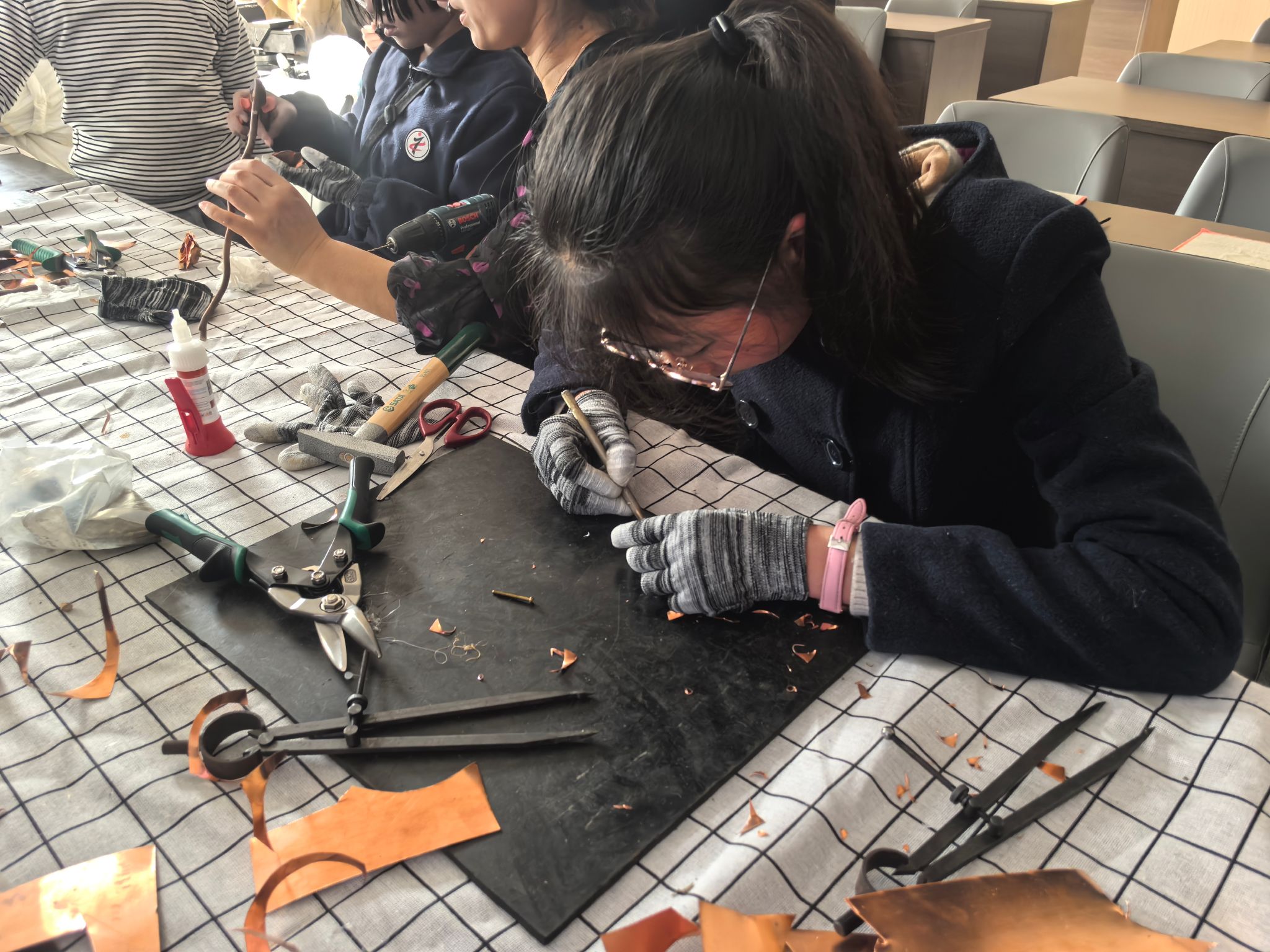 3月1日,黄岩区江口街道党群服务中心内响起阵阵金属敲击声。台州技师学院携特色课程《创意钣金花》,与江口街道共同打造劳动教育实践课堂,为20 余名中小学生授课。