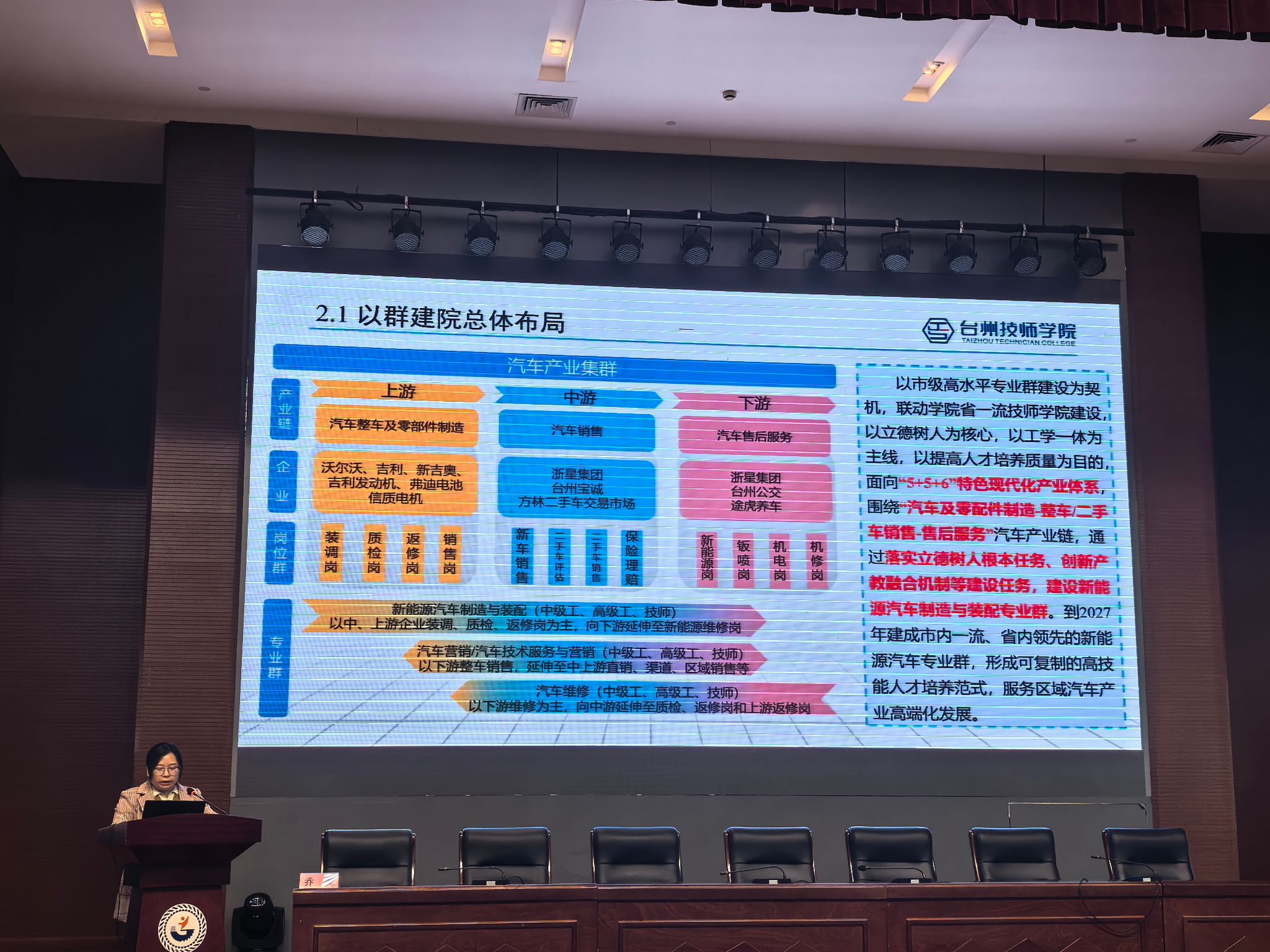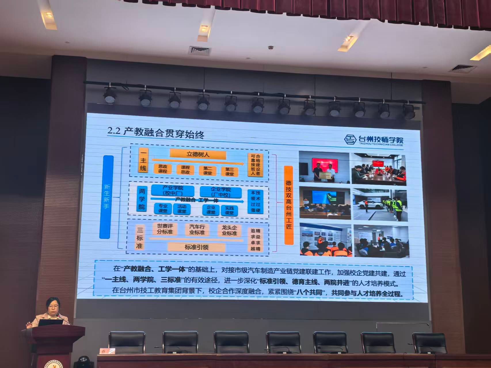 我院院长乔美对此次年会的举办给予高度评价,并对台州技师学院交通类专业发展寄予殷切期盼。她表示,工学一体化是职业教育的核心育人模式,更是培养高素质技术技能人才的关键路径。此次年会为全省交通职教同行搭建了交流互鉴、协同共进的优质平台,让我们得以近距离学习兄弟院校的先进理念与实践成果。希望全院教师以此次年会为契机,立足行业发展需求与学生成长规律,持续深化工学一体化教学改革,将行业新技术、新工艺、新规范深度融入教学全过程,不断提升课堂教学质量与育人实效;同时,要加强与行业企业、兄弟院校的合作联动,整合优质资源,共建实训基地、共研核心课程、共育技能人才,为台州乃至全省交通行业高质量发展输送更多懂技术、善实践、能创新的高素质技术技能人才,助力职业教育在服务地方经济社会发展中实现更大作为。