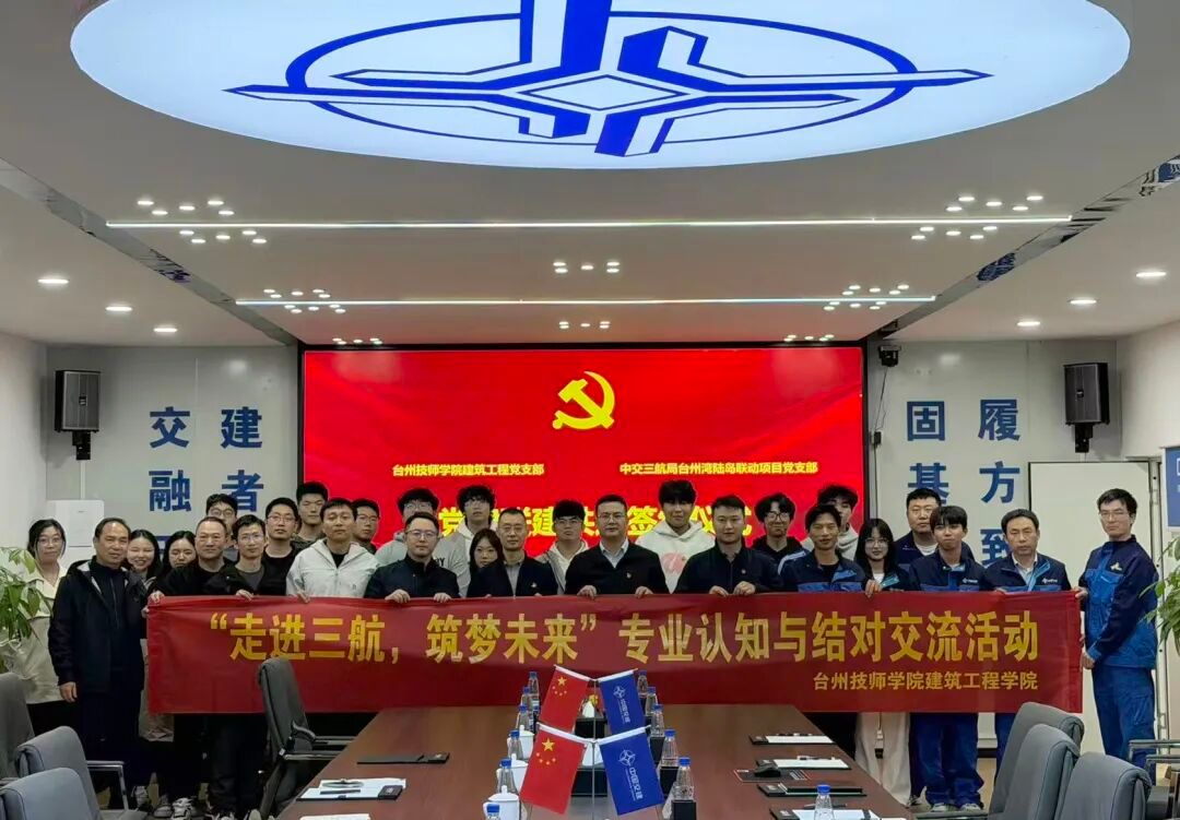 11月12日下午,台州技师学院建筑工程支部组织全体党员,前往中交三航局台州湾陆岛联动项目部,与项目部党支部联合举办“党建引领聚合力 校企融合促发展”主题党日活动。