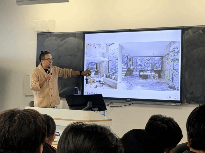 宣讲会的压轴环节,黑马先生向师生们展示了他的个人简介和代表作品集。他对每个项目背后故事的娓娓道来,让同学们仿佛亲历了从概念诞生到落地的全过程,直观感受到了设计的魅力与力量。