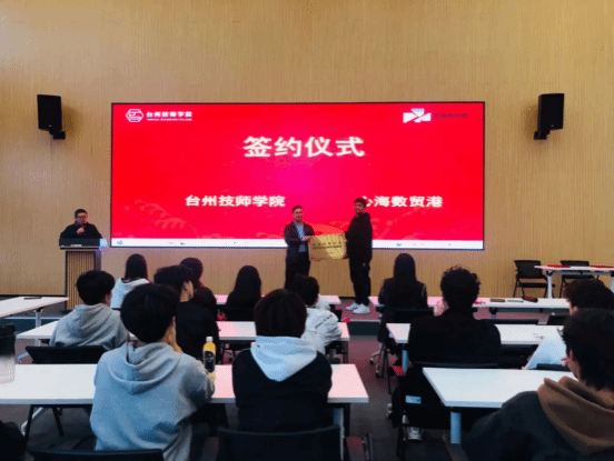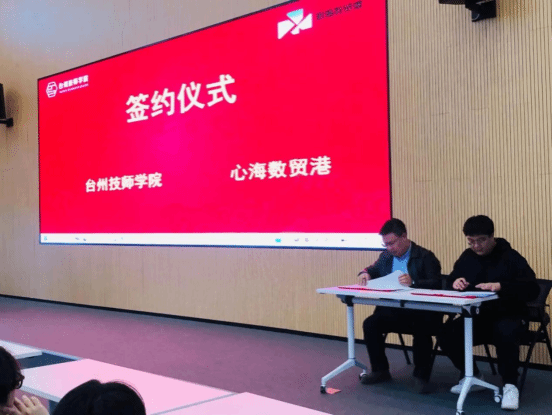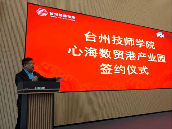 11月19日,台州技师学院与心海数贸港产业园签订战略合作协议,协定双方发挥各自优势,携手培育新电子商务领域高素质技术技能人才,助推台州实体经济与数字经济融合发展。学院党委委员、副院长柯中炉出席签约仪式。