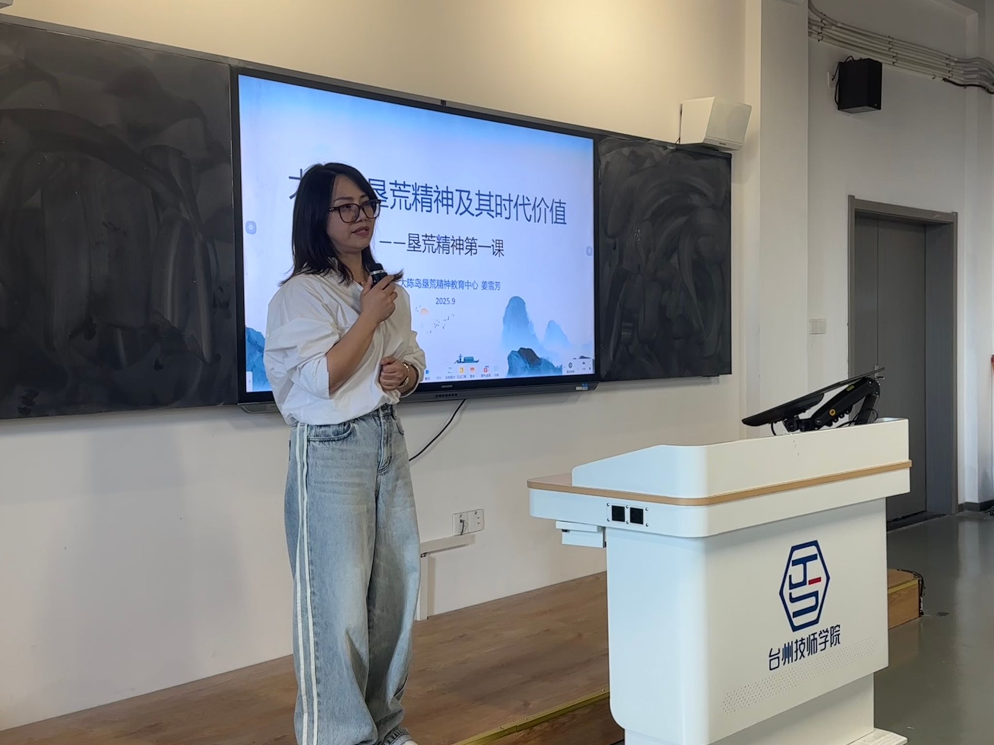 为深入学习贯彻习近平总书记关于弘扬大陈岛垦荒精神的重要指示精神,深化思政课项目化改革,完善“大思政”育人格局,助力一流技师学院建设,9月26日下午,我校特邀台州大陈岛垦荒精神教育中心讲师、浙江省理论宣讲先进个人、省高校思政课名师工作室顾问姜雪芳老师来校,在鸿蒙楼506教室作了题为《大陈岛垦荒精神与青年使命》的专题讲座。人文学院(马克思主义学院)全体教师及学生代表共同聆听本次讲座。