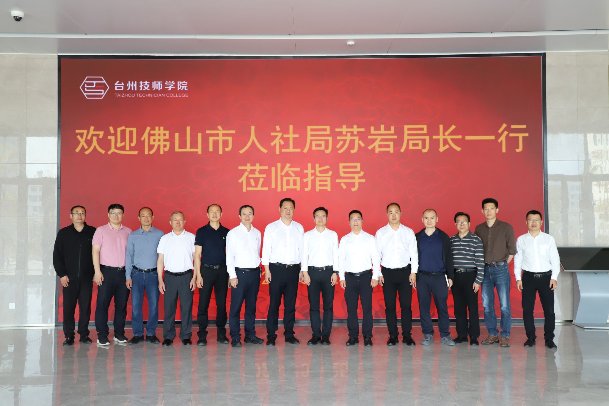 3月25日,佛山市人力资源和社会保障局党组书记、局长苏岩一行来校调研考察。佛山市人社局党组成员、副局长陈再勋,三级调研员张有志,佛山市技师学院党委书记、校长甘汉忠,台州市人社局党组成员、副局长何韬,台州技师学院党委书记李金国,党委副书记、校长章永华,党委委员、副校长柯中炉陪同调研并参加座谈。
