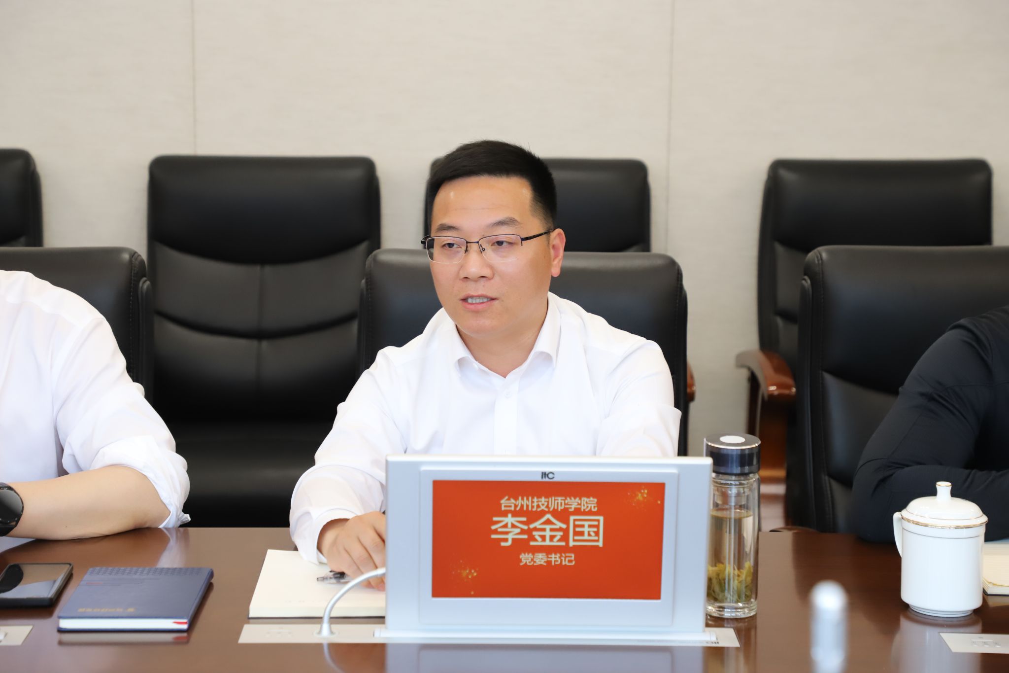 座谈会上,何韬介绍了台州市域技能型社会建设现状与经验。李金国介绍了学校职技融通育人模式创新、智慧校园建设、师资队伍建设、社会培训等方面的做法。双方进行深度探讨。
