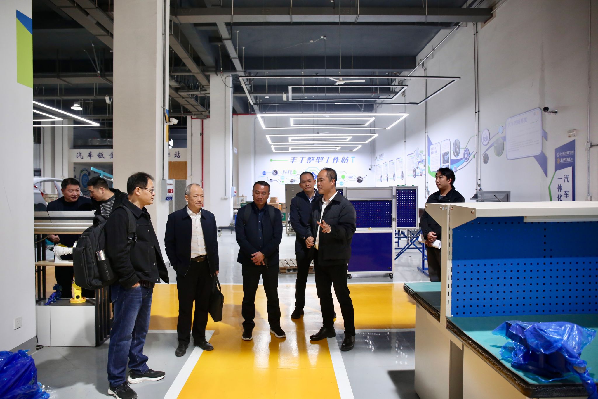 赖昭忠一行先后考察了交通技术学院、数字技术学院、智能制造学院、建筑工程学院、医药健康学院实训基地,了解新能源汽车实训、VR 教学、工业机器人应用等实践教学情况,让调研团队直观感受到“教室即车间、教师即车间主管”的“院司一体”办学氛围,当了解到学生设计作品可直接对接企业生产流程,实现“学习-实践-产出”无缝衔接时,赖昭忠对这一工学一体化办学模式给予高度评价。