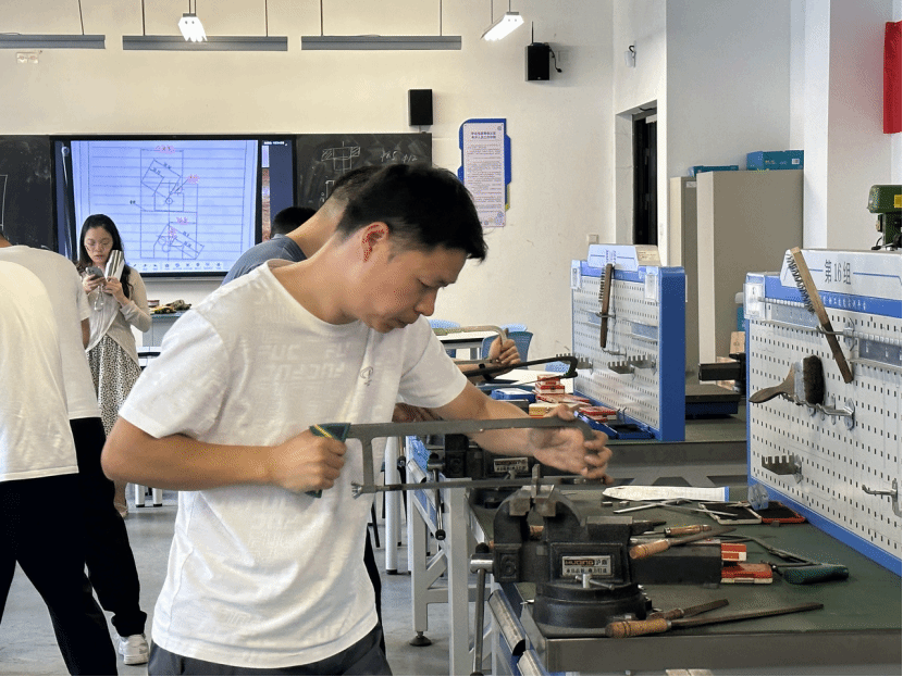 应云建大学本科学历,工作已经20年,现担任亿利达设备设计工程师一职,先后获得过高级工程师职称证书和技师职业技能等级证书,但他感到自己在钳工技能方面还需进一步提升。一个月前,他报名了这期钳工高级技师培训班,开始了为期两个月的理论学习和实训操作课程。两个月培训结束后,如通过考核,他将获得人社部门颁发的高级技师技能证书。